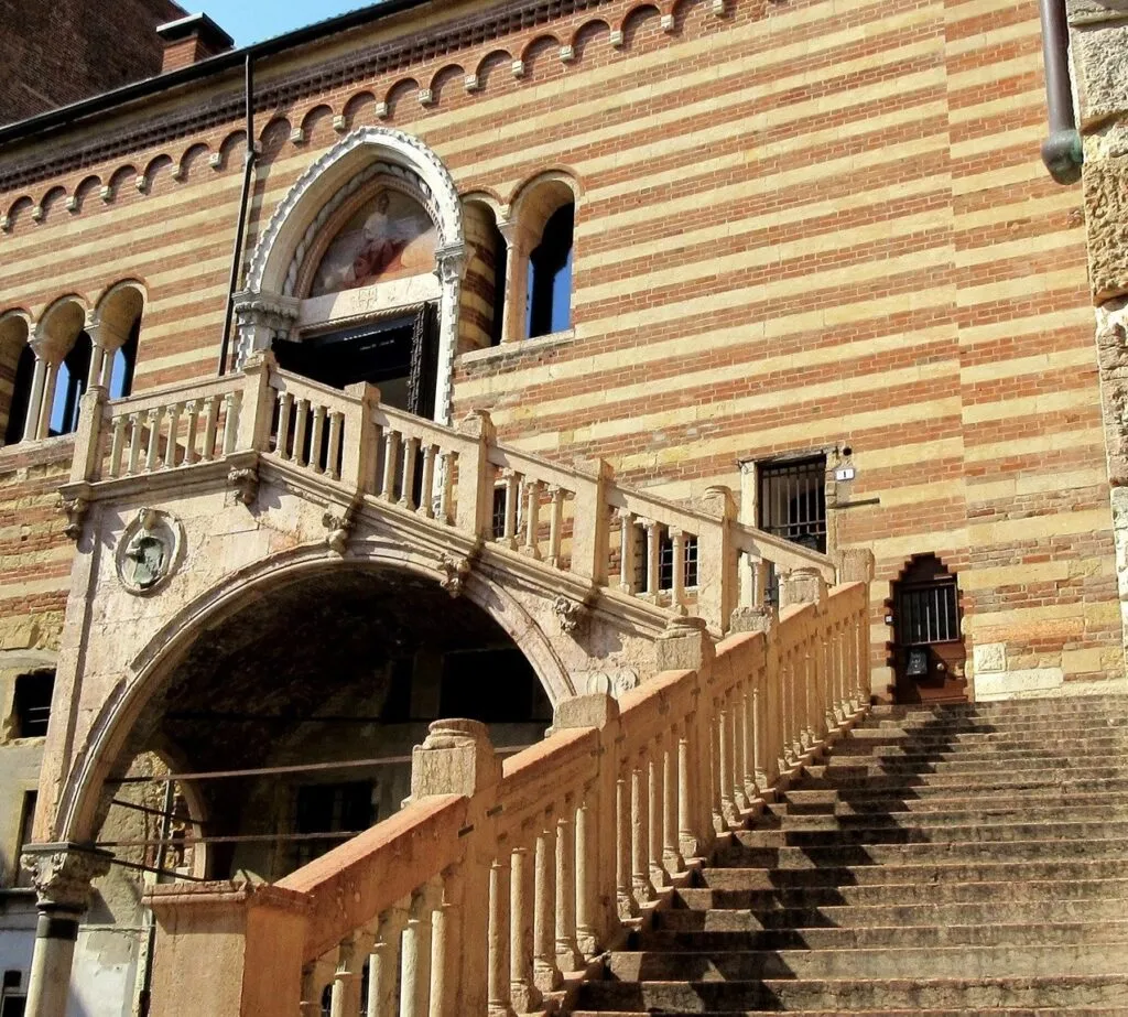 In Piazza Bra, a few steps from the Arena, there is another place that welcomes the promise of lovers. Palazzo Barbieri is a neoclassical building inspired by the forms of the ancient Romans and since 1869 it has been the town hall. On the main floor of the building there is the Sala degli Arazzi – Hall of Tapestries – that takes its name from the two huge late sixteen century paintings that decorate it. The first one represents a dinner at the Levi house, the second describes the victory of the Veronese over the troops of Federico Barbarossa.