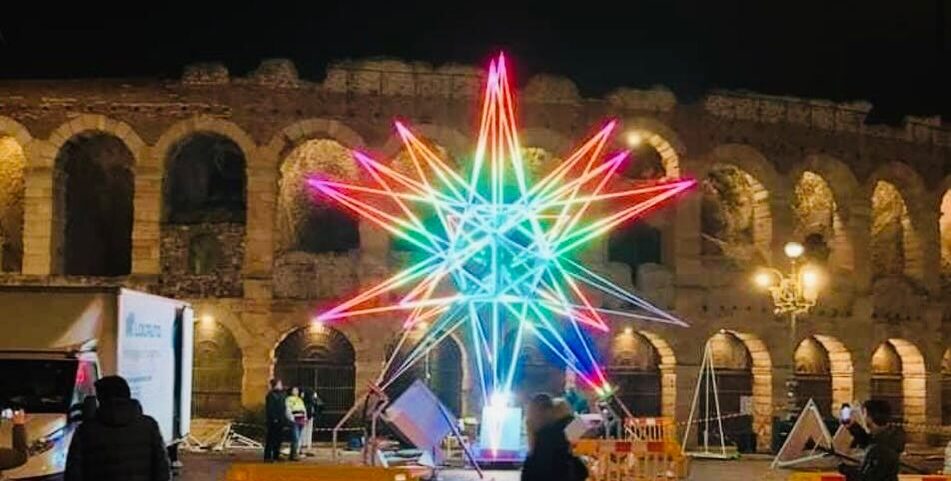 The installation will be used this year as a replacement for Olivieri’s comet star, which will reportedly return to prominence in Christmas 2024, when it will also celebrate its 40th birthday. The new star will become an itinerant artwork to be placed in Verona’s most iconic spots.