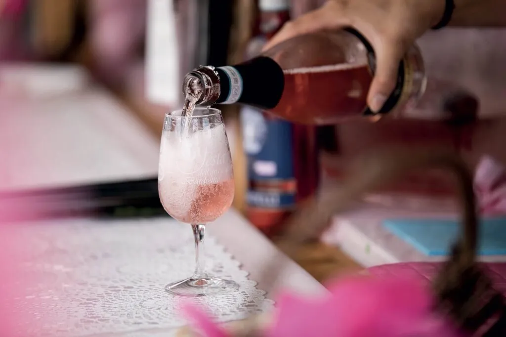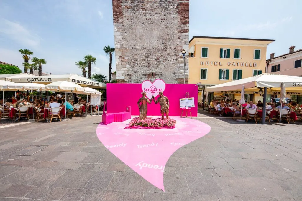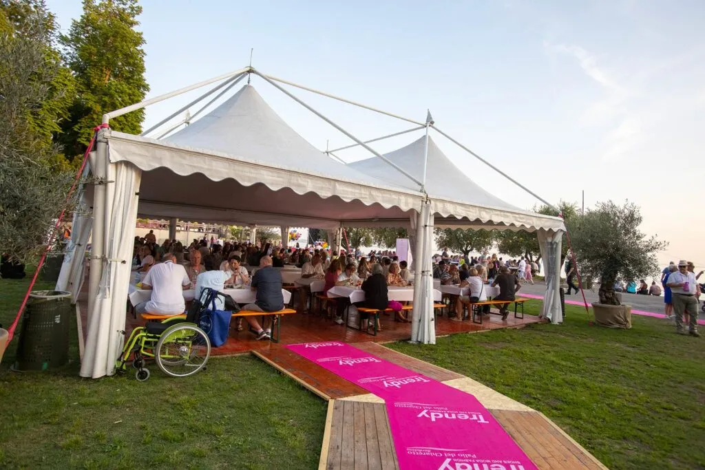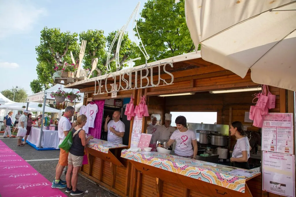 Food and wine stands, from hors d’oeuvres to dessert, indoors under the marquee, for lunch and dinner. There are three menus to choose from, but also many typical dishes, including delicacies based on fish from the lake, cold meats and cheeses, and traditional first courses, some delicacies to be tasted. Such as the pink gnocchi, free-range chicken in saor with soft pink polenta or the Valeggio sul Mincio ‘Riviera’ tortelli with robiola, ricotta, Monte Veronese cheese and Garda lemon powder. Also popular are the cocktails designed for the occasion: cocktail d’Amore, alcoholic and non-alcoholic, and the Chiarè.