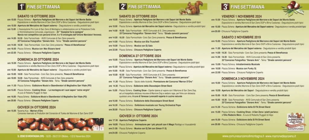 The complete programme is available on the social networks, Facebook and Instagram, of the Consortium of Marrone di San Zeno DOP and on the website: www.marronedisanzeno.it