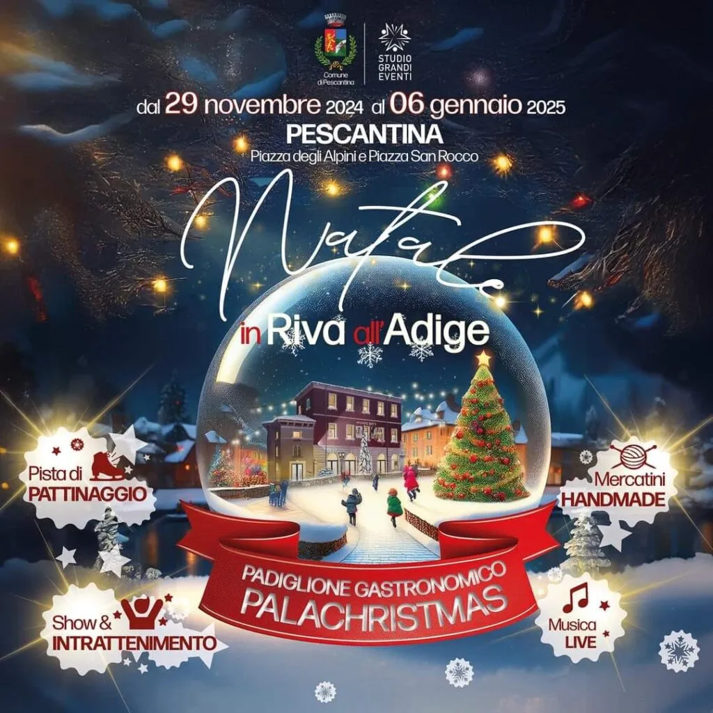 On Saturday 7 and Sunday 8 December, Piazza San Rocco, on the banks of the Adige River, will also be animated with the setting up of the ‘hand made’ market as well as the inauguration, on Sunday 8 December at 4 p.m. in the Council Chamber, of the exhibition of cribs . Every Wednesday and Sunday from 4 to 6 p.m., children – aged 3 to 10 – will be able to take pony rides, while on Thursdays there will be singing dinners with karaoke. Also at the ‘Palachristmas’ on Thursday, 26 December, the marquee will be transformed into ‘Pescalandia’ with entertainment, workshops, and games for children; at 9 p.m. there will be a bubble show. Amongst the numerous events on the programme, of particular note is the parade of Santa Claus on horseback on 22 December, who will set off at 10 a.m. from Arcè di Pescantina to then reach the San Lorenzo cathedral in Pescantina for the christian blessing. Some twenty associations have been involved in the organisation of the various events, and on some days they will use the tensile structure in Piazza degli Alpini to organise social dinners and Christmas-related activities, dedicated to the disabled, the elderly, as well as families and young people.