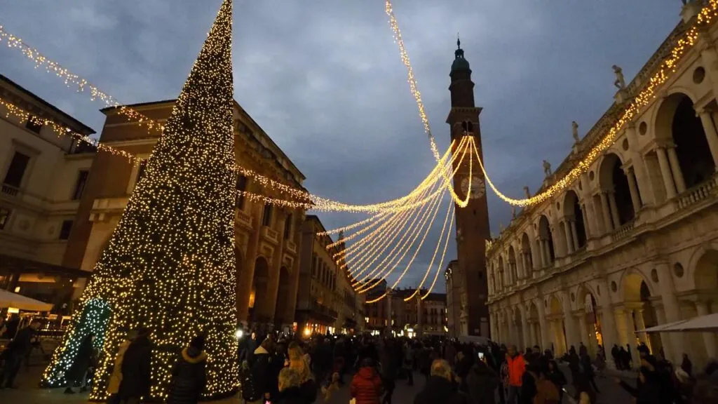 The illuminations also light up the large natural tree in Vicenza’s historic centre, more than 17 metres high, decorated with warm LED lights. Christmas is also illuminated in the other areas of the city with the traditional cascades of lights in Piazza delle Erbe, Corte dei Bissari, Piazza Biade, Piazza Matteotti, Piazza Castello, Piazza San Lorenzo, and Piazzale De Gasperi, and in Piazza Matteotti with a luminous sphere perfect for Christmas selfies. And then the streets, green areas and roundabouts up to the peripheral areas bordering the historic centre.