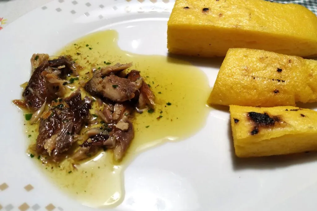 The festival’s culinary centerpiece is “polenta brustolà con la renga” This dish features grilled polenta accompanied by smoked herring, generously drizzled with high-quality extra virgin olive oil. The robust flavor of the herring pairs harmoniously with the subtle sweetness of the polenta, creating a delightful gastronomic experience. In earlier times, in modest households, a herring might be suspended from the ceiling, and family members would rub their portions of polenta against it to impart a hint of its distinctive taste.